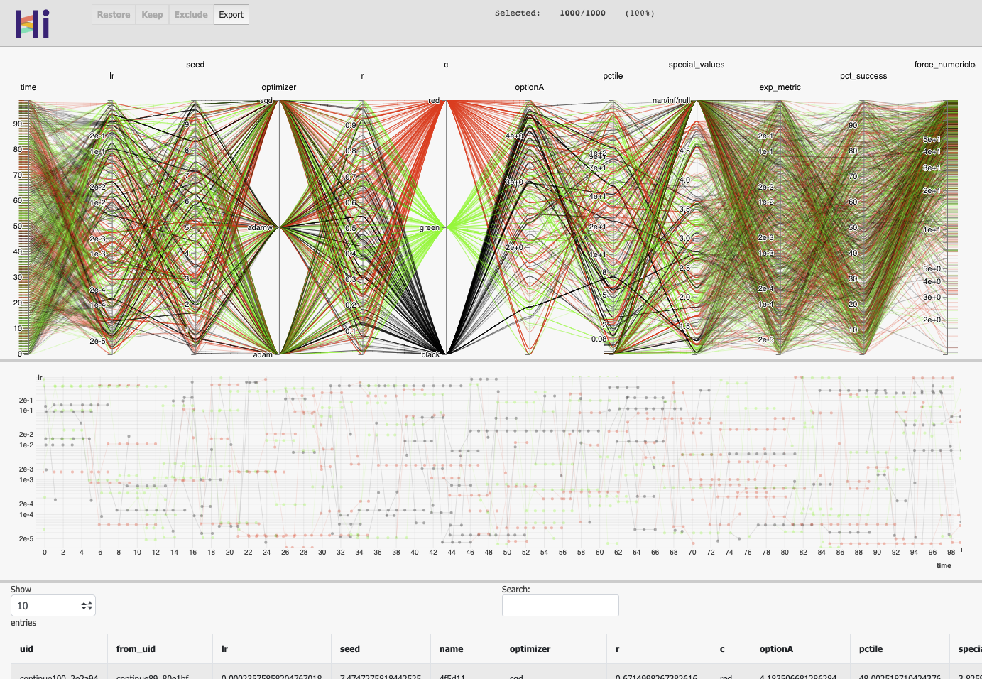 Or for invididual components with hiplot.Experiment.display_data() (see Displays reference for all possible values)